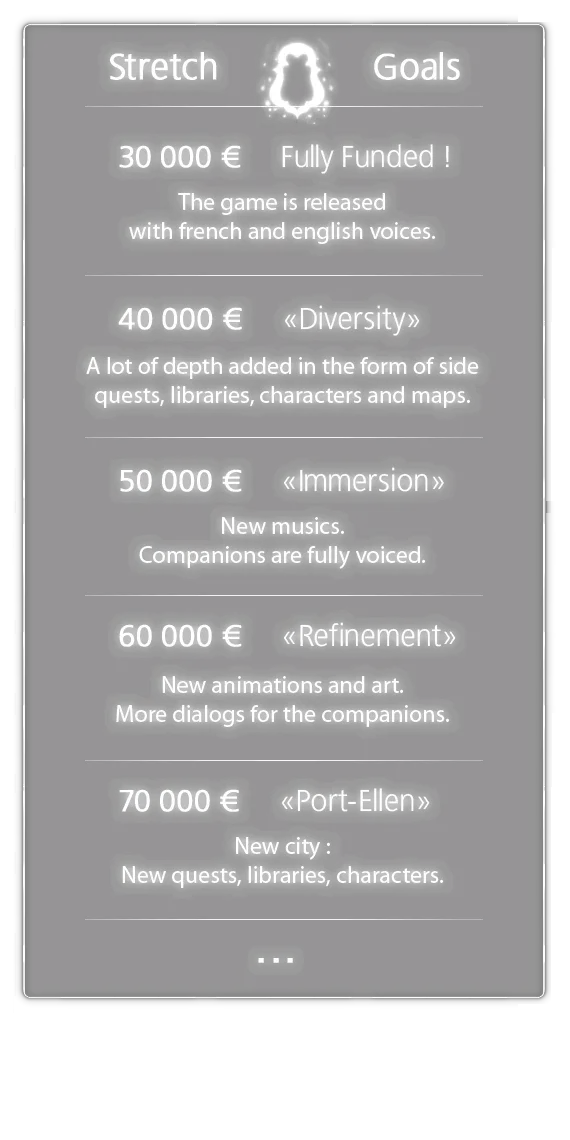 Более высокие достигнутые цели помогут улучшить разнообразие и количество нового арта, музыки, закадровой озвучки, а также добавить второстепенные квесты и новые интересные места.