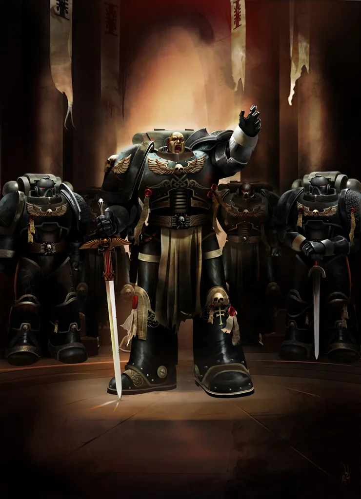 Поскольку разнообразие видов чужаков ужасает любого верного слугу Императора, постольку и от Караульных Смерти требуется уверенное владение любым личным оружием, как огнестрельным, так и холодным. На данном арте Караульные изображены перед боем, их позы позволяют предположить, что автор хотел показать "рыцарское братство" десантников, постоянно служащих в одном отделении Караула.