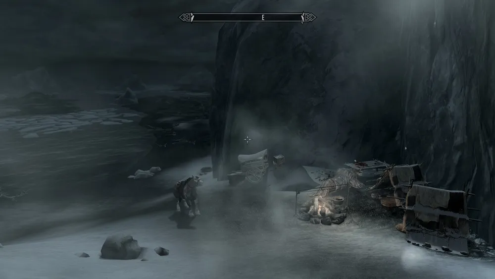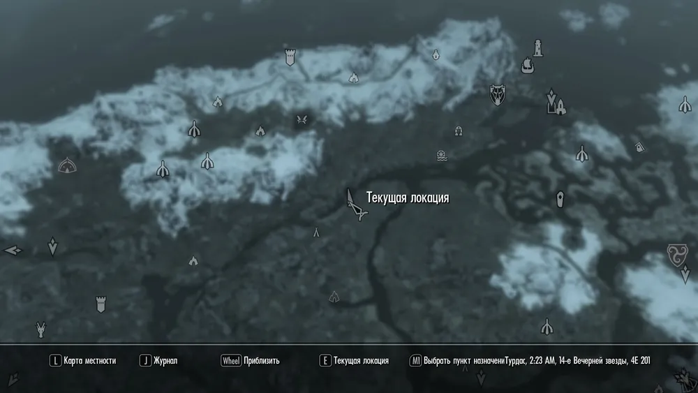 Местоположение карты: Довольно сложно. Карта находится на теле охотника на хоркеров, которое лежит к востоку от Винтерхолда. Тело на островке у побережья среди стада хоркеров, островок примерно на одном уровне с Саарталом, если проводить горизонталь с запада на восток. С берега удобно ориентироваться из лагеря, куда ведет удобный спуск (кстати, в лагере на столе учебник и стоит ничейный - и притом красивый - конь, которого можно оседлать и потом использовать как родного).