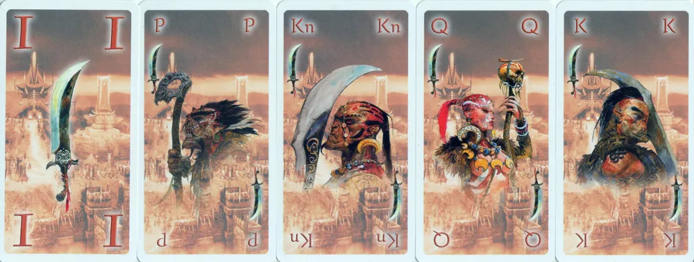 Я отсканировал колоду из своей копии Heroes of Might and Magic: Complete Edition. Прошу прощения за не самое лучшее качество сканирования – карты имеют глянцевую поверхность, поэтому пришлось уменьшать яркость изображения и увеличивать контраст.