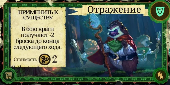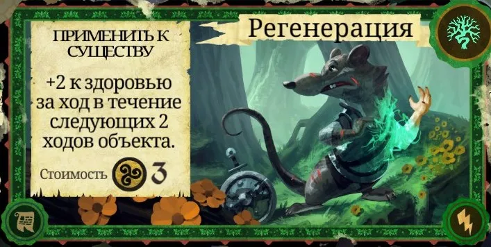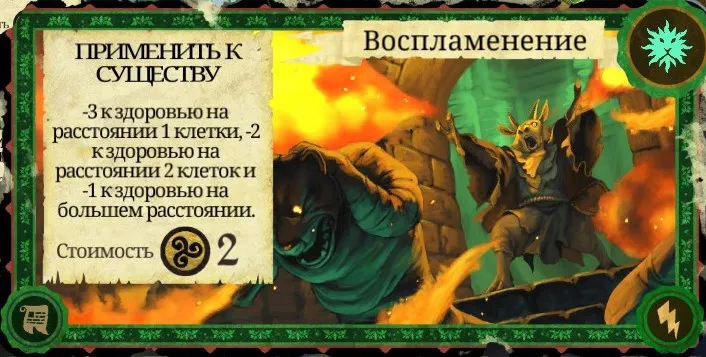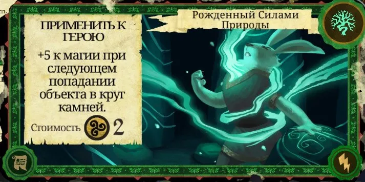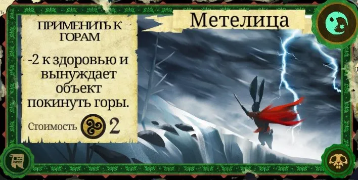 Рекомендации к применению: Эту карту можно использовать при любом количестве магии (в том числе и потратить её впустую при нуле), но ей, разумеется, стоит добивать всё живое и неживое, что вам мешает на пути.