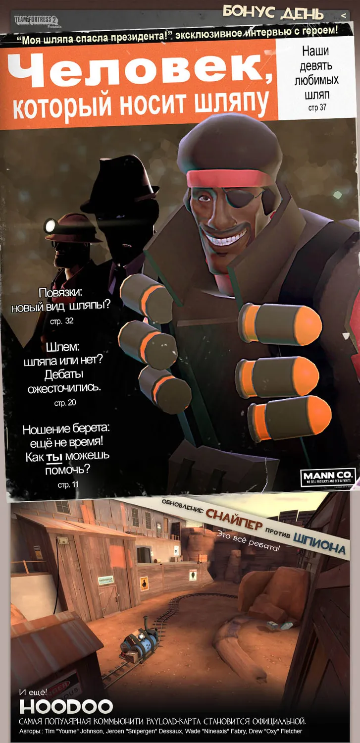 Кроме того, наш торговая компания неслабо повеселилась, придумывая товары к выходу обновления Шпиона и Снайпера, так что удостоверьтесь, что вы ознакомились с этим.