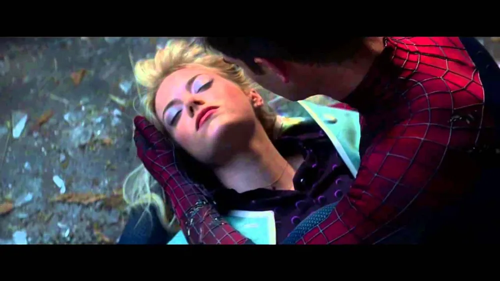 Настоящий заголовок должен был быть таким: «Нoвый Чeлoвeк-пaук: Гвен Стейси и Питер Паркер», потому что основным стержнем фильма являлась эта сладкая парочка. Можно было даже выпустить особое издание фильма, где вырезаны все боевые сцены и оставлены одни лишь диалоги Паркера и Стейси (кстати, складывается ощущение, что многое они сымпровизировали сами), ведь когда эти двое в кадре, от экрана невозможно оторваться. Тем сильнее оказался удар, приготовленный нам сценаристами в конце фильма. Честно говоря, я до последнего не верил, что они убьют Гвен Стейси. Но так нужно было сделать. И это оказалось сильнейшим эмоциональным моментом, просто шоком, электрическим импульсом, после которого выходишь из кинотеатра совершенно ошарашенным. Такие моменты на вес золота.