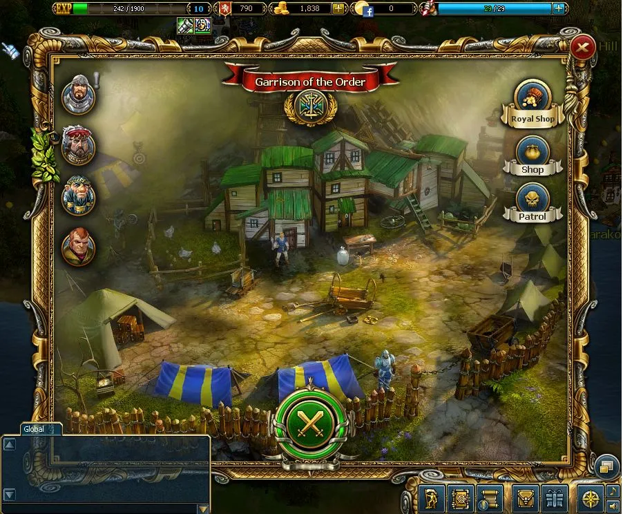 Здесь можно взять квесты, приобрести юнитов и заклинания или просто сразится с рендомным отрядом: