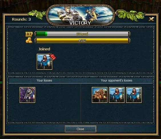 В случае победы, нам дают золото, и "экспу", иногда могут присоединиться юниты из вражеских отрядов: