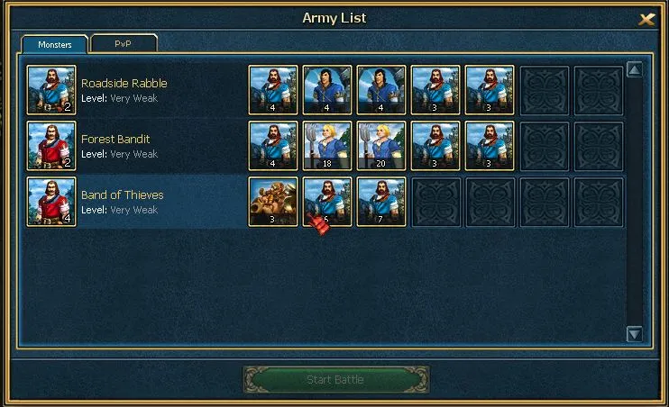 Выбор отряда для сражения: