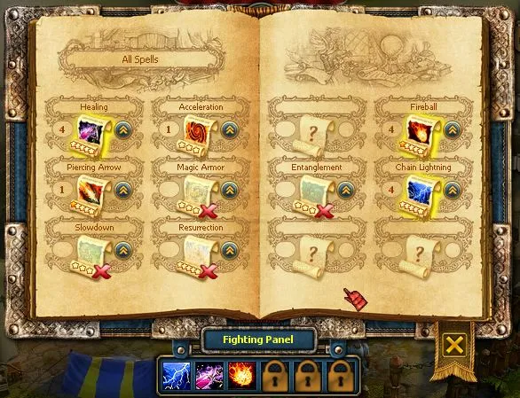 Заклинания, как и юниты можно "прокачивать" за золото, всего имеется 5 уровней.