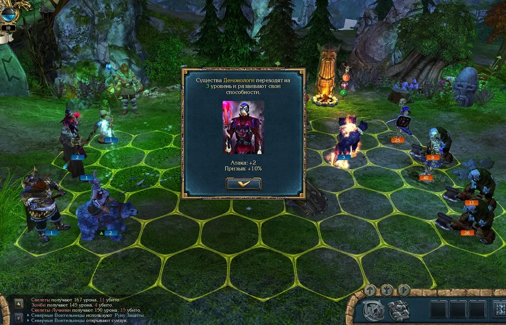 К его удивлению среди находимых объектов в этот раз не оказалось так ненавидимых им алтарей опыта. Приятный сюрприз! Что касается вражеских войск, то главной задачей боёв стала нейтрализация стрелков; после чего воины викинга превращались в зрителей: с остальными противниками расправлялись призванные демоны. Но приходилось внимательно контролировать их хозяев, демонологов; так и норовивших при повышении своего уровня увеличить защиту или атаку. Волхву же было нужно только одно: увеличение призыва.