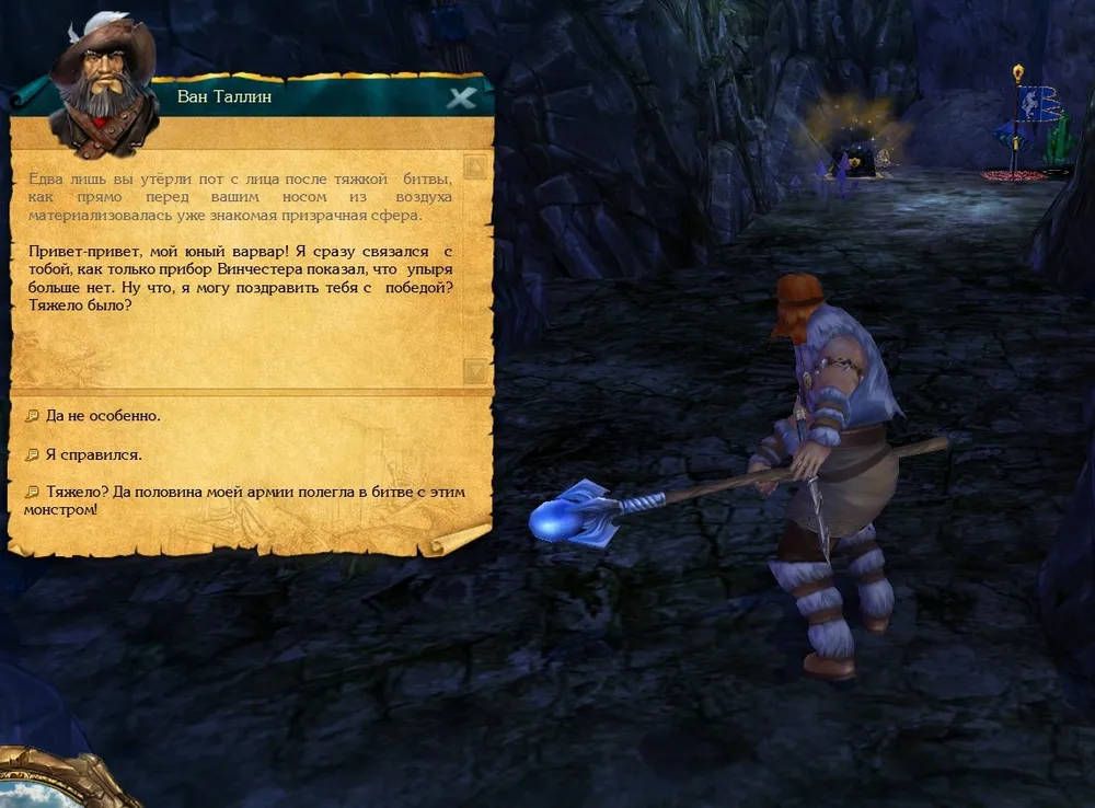 Неправильный ответ: хуже всего – «пьяный» Ван Таллин. Едва закончился первый бой с гномами, как неведомо откуда появился борец с нежитью и понёс околесицу, предлагая уничтожить давно упокоенного упыря. Что за чушь?