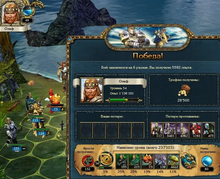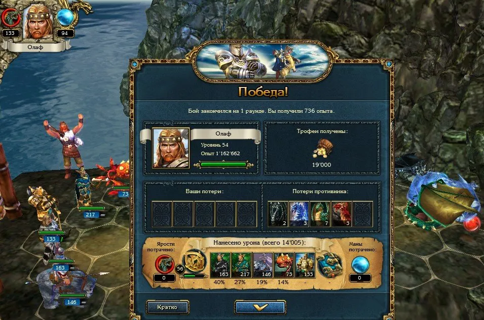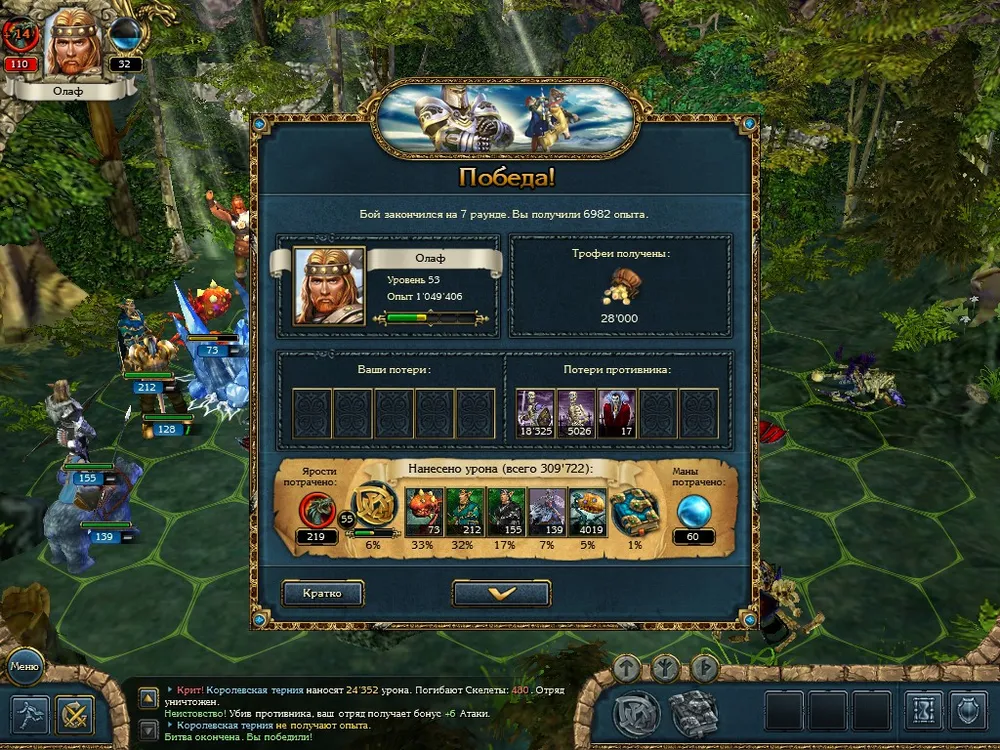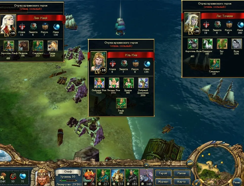 Обнаружив, что два отряда лучников стали едва ли не главной ударной силой, я решился на эксперимент, укомплектовав войско четырьмя эльфийскими отрядами. Разумеется, в центре стояли паладины: должен же кто-то заниматься лечением? Результат превзошёл все ожидания: враги буквально выкашивались ливнем стрел, все бои заканчивались на втором-третьем раунде.
