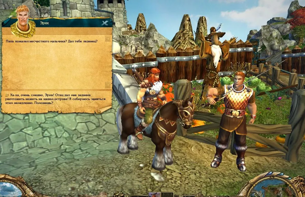 Не спешите с радостной вестью к отцу – разозлённый Эрик немедленно перекроет дорогу в порт. Сначала приобретите корабль, обойдите окрестные островки ради ценностей и опыта. Например, в избушке я приобрёл трёх Королевских Грифонов, а на маяке – пиратов.