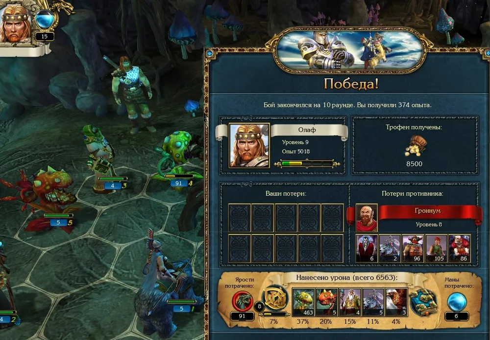Тем временем мистики совершили настоящий подвиг: сумели «задурить голову» некроманту, немедленно павшему под ударами собственных скелетов. Победа.