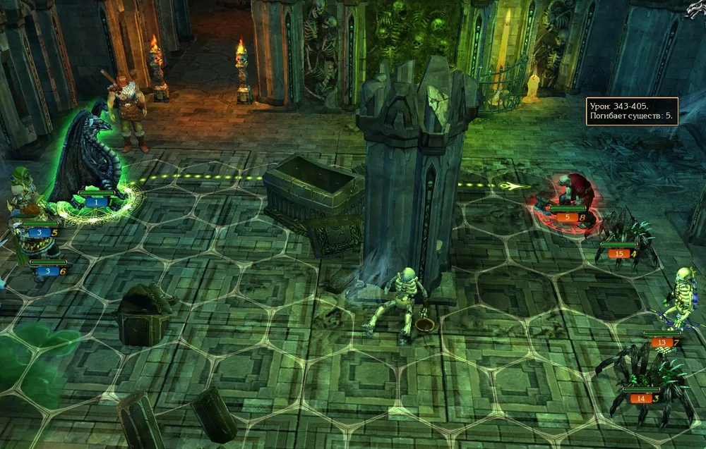 Спускаюсь к Уладару, и вновь дело решают тернии: магические атаки некроманта направлены на них. Между тем зубастые растения не столько атакуют врага, сколько разбрасывают семена, создавая преграды и позволяя вести огонь дистанционным войскам.