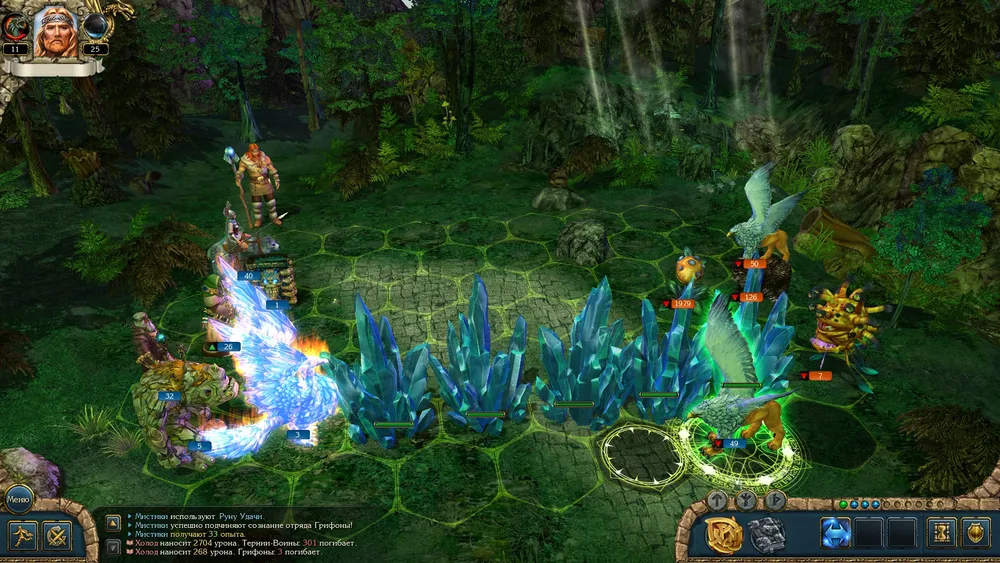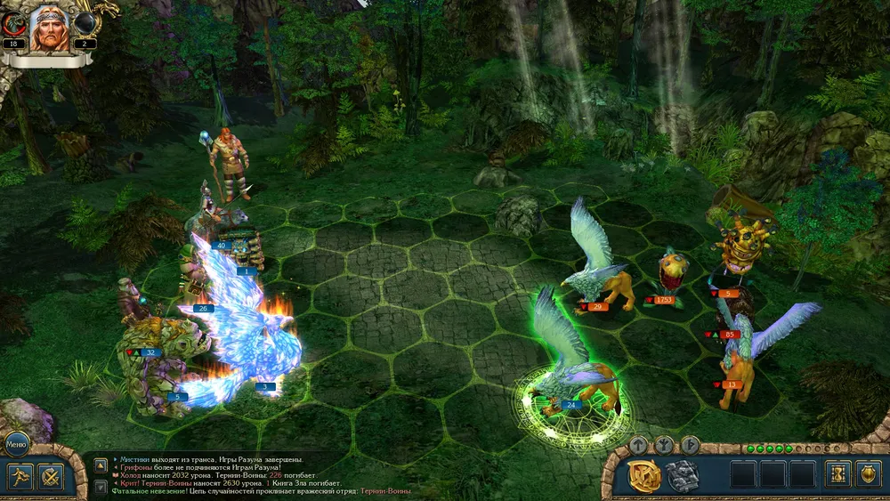Напоминаю о ещё одном полезном баге с вражескими грифонами (для его исполнения мистики непременно должны ходить раньше грифонов, и обязательно взять их под контроль). Гипнотизируем грифонов, тотчас разделяем отряд и отправляем половину ближе к нашим войскам. Оставшиеся враги должны быть уничтожены раньше, чем грифоны выйдут из-под контроля, а в вашем войске не должно быть свободных мест.