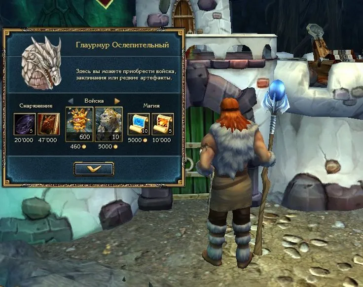 Следующий этап – выполняем задание Паракрата, но не убиваем похитителя медикаментов, в его хижине частенько бывают доступны для найма циклопы или тролли.