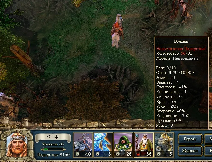 В этом случае после боя половина грифонов так и останется союзниками, но, поскольку все отряды укомплектованы – превратится в один из ваших отрядов, превысив его численность.