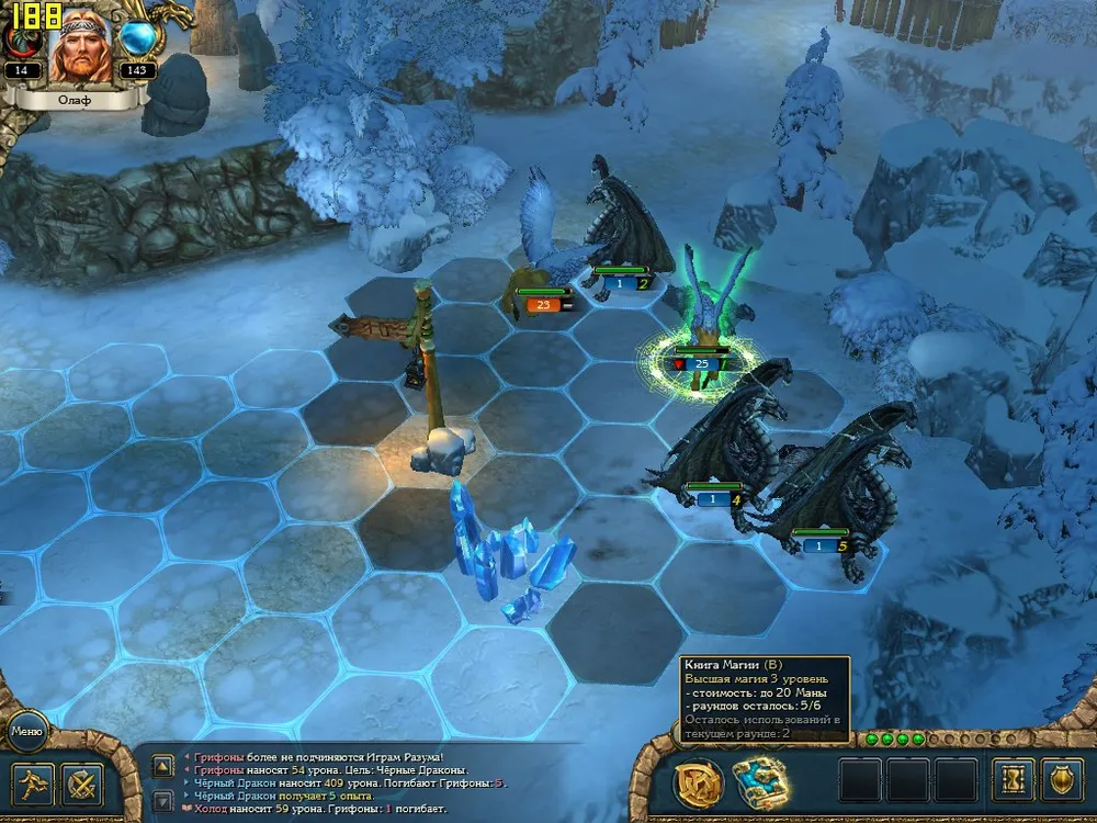 В логове у дракона, побеждённого в первом раунде – зелёные и костяные собратья, а также грифоны и …змеи. С ума он сошёл, что ли? И опять – ни одного огненного заклинания. Да что же это такое?!