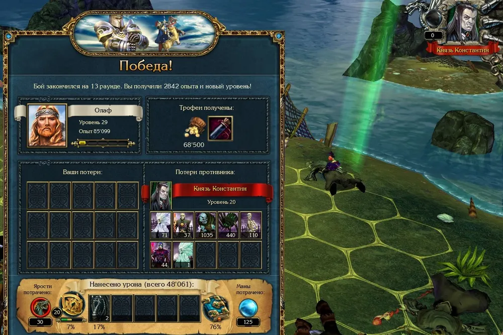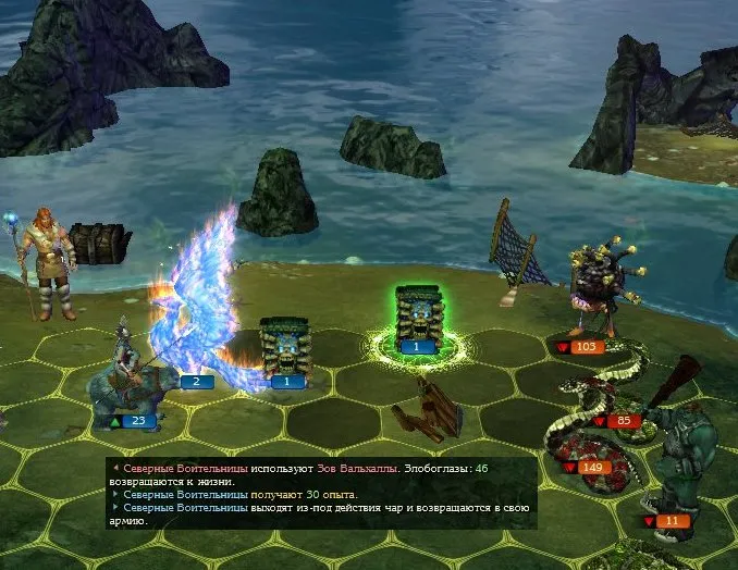 Забавную шутку отпустили враждебные злобоглазы (в тот момент мне было не до смеха!), очаровав не успевших походить северных воительниц. Я ожидал, что какой-то из моих отрядов «ляжет» в полном составе, а воительницы просто… воскресили погибших злобоглазов.