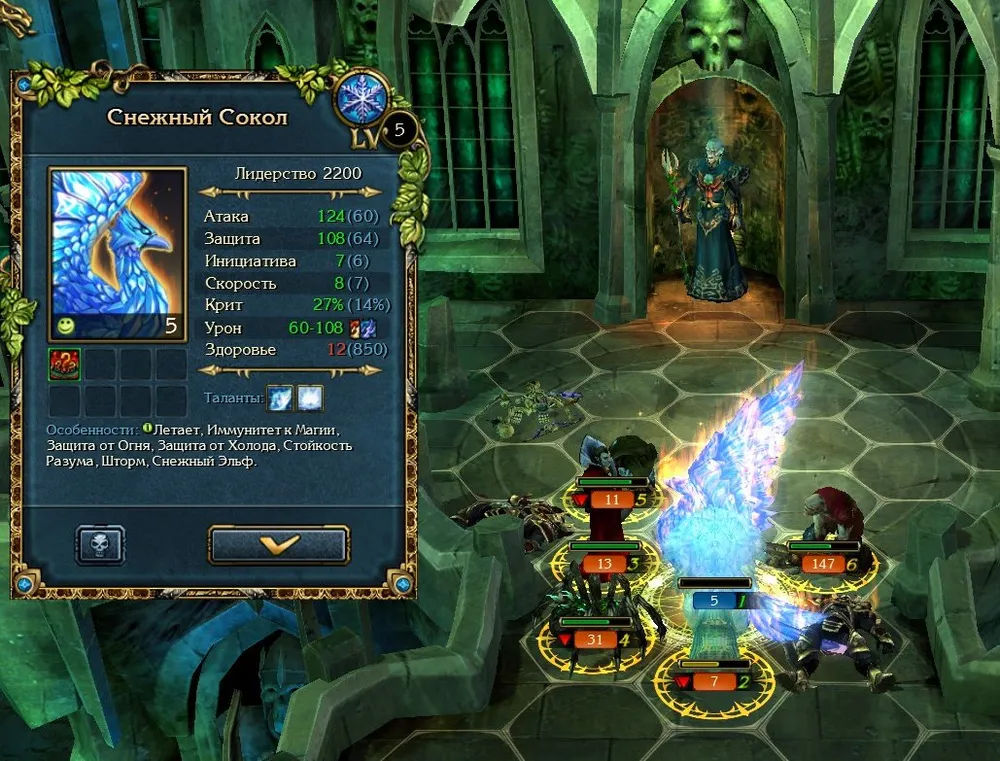 Полезно нанять королевских грифонов – ради их способности призывать союзников. Но лучше всего, разумеется, получить в войско ледяных соколов, если они остались в резерве, или драконов. Где бы ещё взять последних…