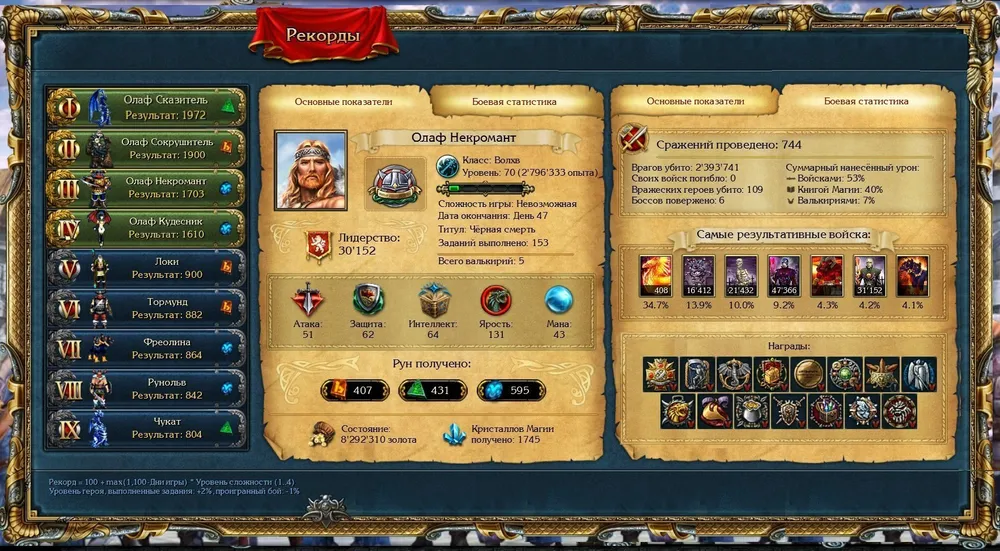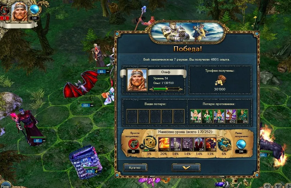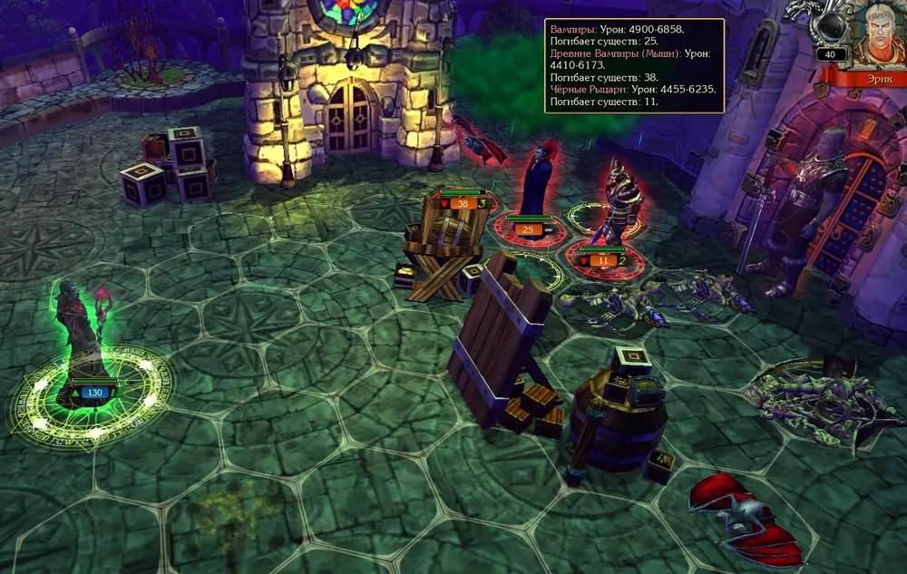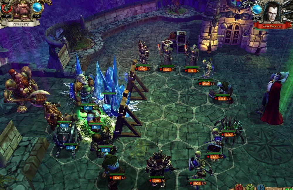 Но и Некромант был не начинающим командиром мёртвых полков: путь быстрым врагам преграждали ледяные стены и барьеры, призванные книги кошмаров, вызванные демоны и поднятые мертвецы. А враги с дальней атакой ещё в первых раундах уничтожались магией.