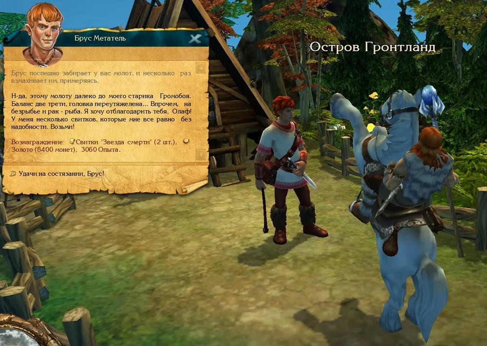 Буквально на мгновение Олаф заглянул на Гронтланд: лишь затем, чтобы отвести мать к сыну и лишить Асвальда возможности подарить карту этого острова вместо свитка магии странствий. И тотчас поспешил на Рифтланд, выполнять многочисленные связанные с этим островом задания.