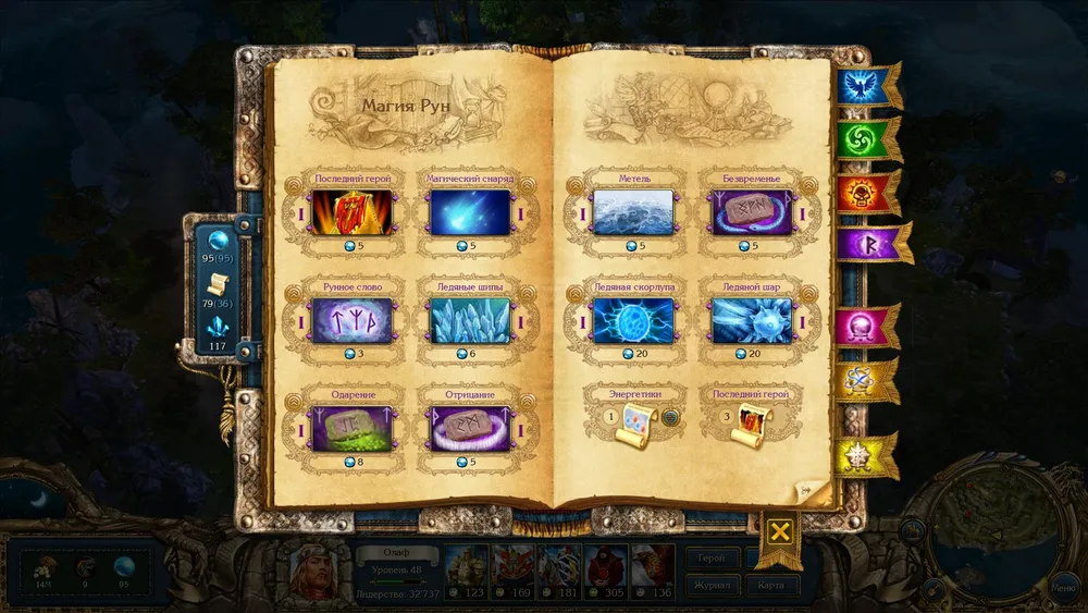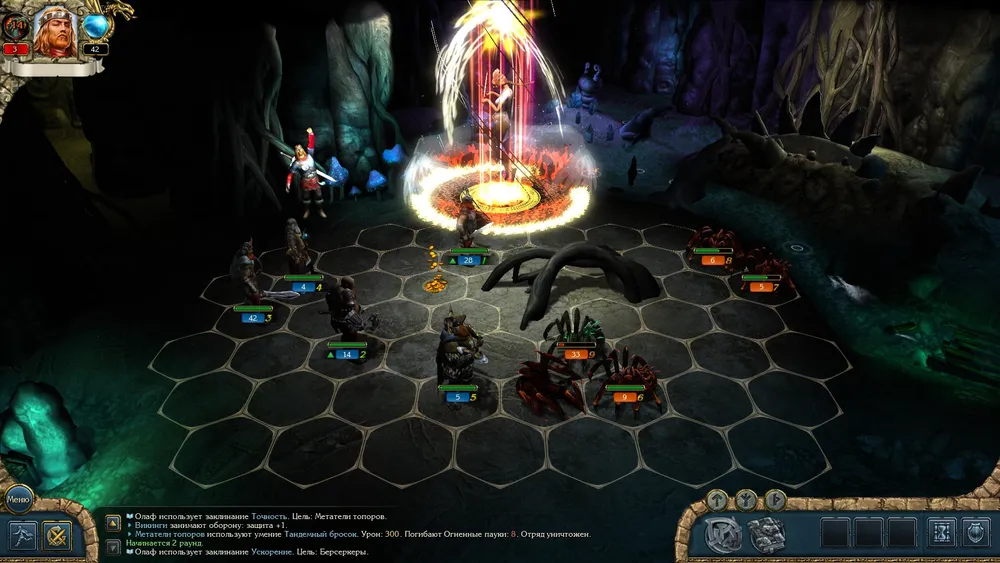 Теперь герои не наблюдают за битвой «свыше», а стоят прямо за гексагональной ареной. Олаф может даже вмешаться в бой, применив способность, но на это тратится ярость. Еще одно нововведение боевого режима — руны атаки, защиты и удачи. Изначально есть у каждого отряда, дают бесплатные бонусы на один ход.