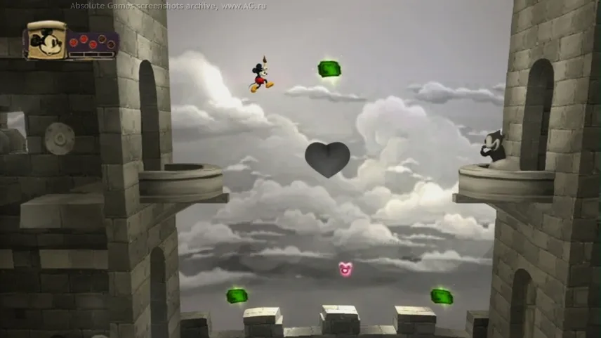 Углубившись в подробности и нюансы игры, я был сначала огорчен, так как не ожидал такой дерзкой идеи. Всё дело в том, что Микки теперь далеко не ангел и понятие его о мире и отношении к другим персонажам – это ваша бескрайняя фантазия+задумка авторов. О чем идёт речь? Каждое ваше действие относительно персонажей игры влияет на характер мышонка, он может стать сущим дьяволом в ваших руках.