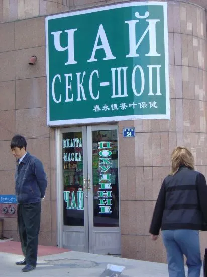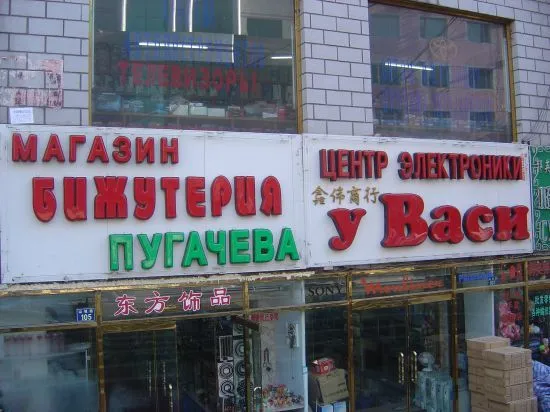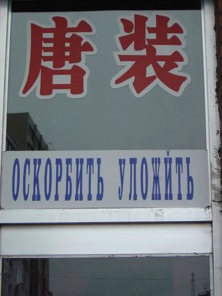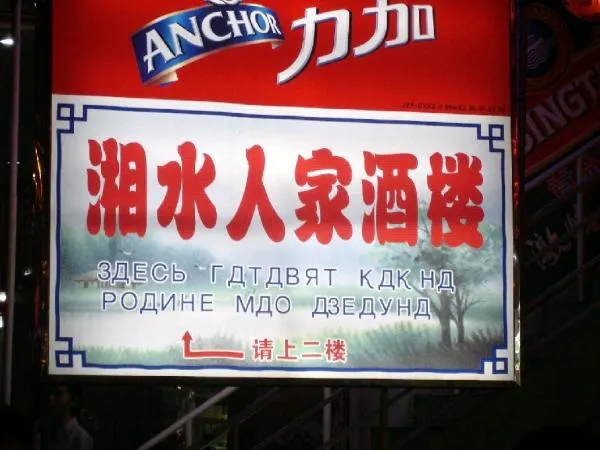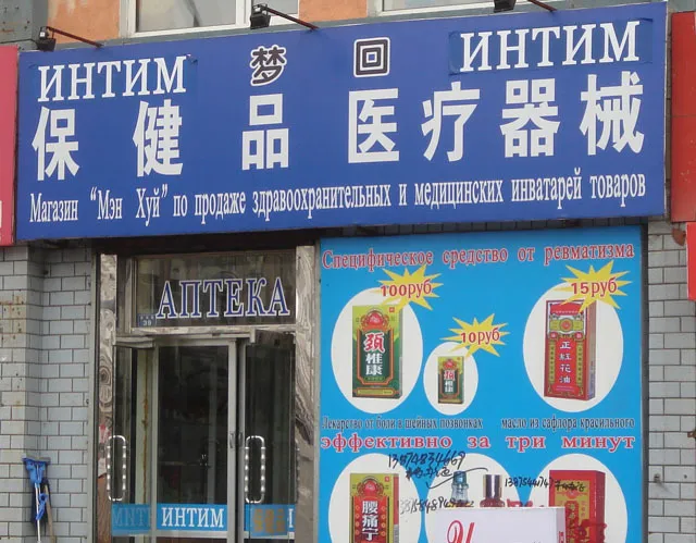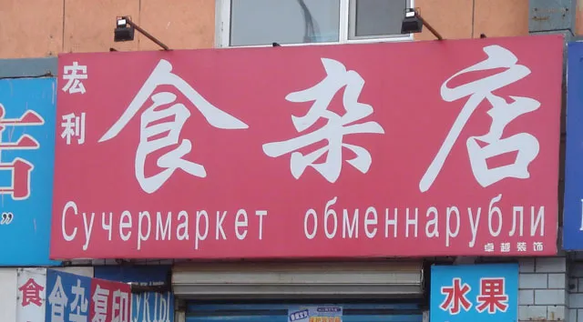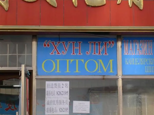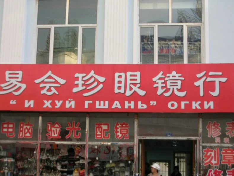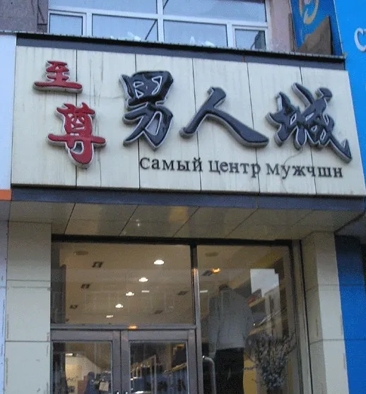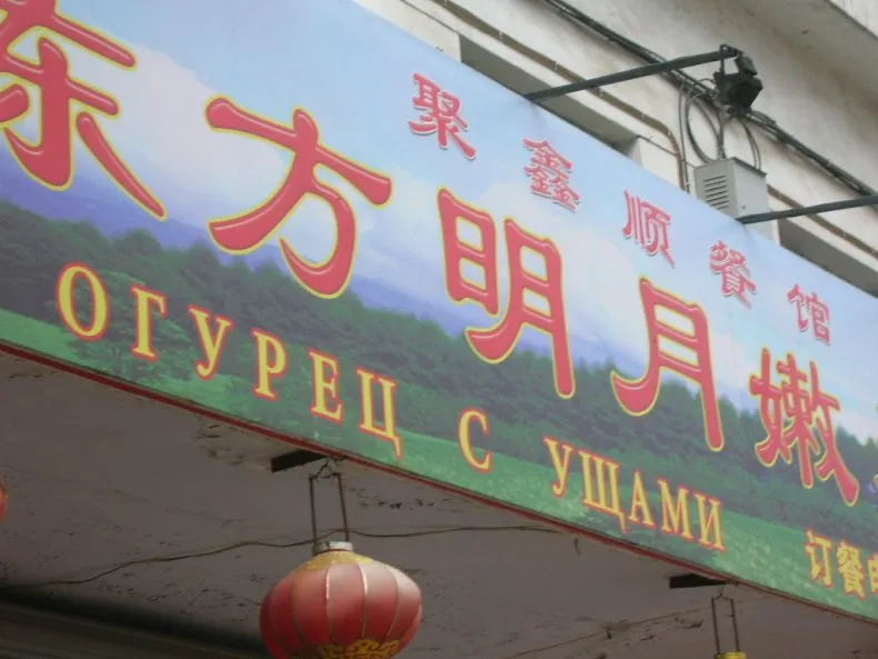 Популярная тема в интернете — попытки китайцев дублировать свои вывески на русском (якобы) языке, вероятно, для русских "челноков".
