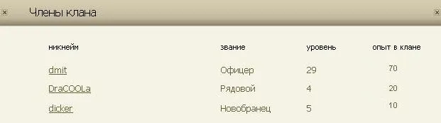 Также в «Члены клана» можно добавить сортировку по опыту.