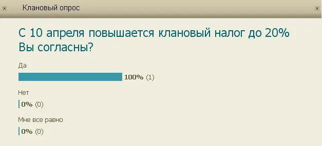 1) Предлагаю дать возможность каждому участнику клана при публикации своего поста устанавливать налог, который он хочет пожертвовать клану. Налог не может быть ниже установленного кланом.