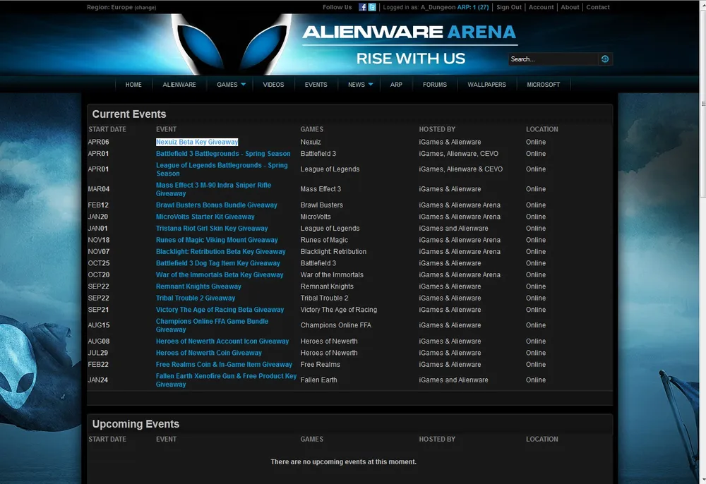 - Зарегистрируйся на сайте Alienware Area или войди под своим логином