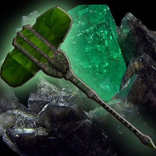 Изготовив искусно украшенную узорами рукоять, кузнец задумался над тем, как же он сможет внедрить её в центральную часть изумруда без вреда для туманной субстанции? «Если тёмные завихрения исчезнут, то молот перестанет быть таким единственным и неповторимым» - пронеслась в его голове безумная мысль. Осторожно проделав отверстие для рукоятки, кузнец опасливо наблюдал, как чёрная субстанция маленькой струйкой вытекает из изумруда. С ужасом он понял, наконец, что это за жидкость, понимание нагрянуло, словно нежданный шквал яростного ветра в спокойный солнечный день. Скверна… сверкающие оттенки изумруда стали стремительно терять свою яркость, становясь матово-зелёными. Нужно было что-то сделать, как-то остановить этот губительный для драгоценного молота процесс, и кузнец в отчаянном порыве вставил рукоять в отверстие. Кузницу озарила яркая вспышка света, а кузнеца и его изделие окутала густая чёрная пелена. Она рассеялась также быстро, как и появилась, но кузнец исчез!