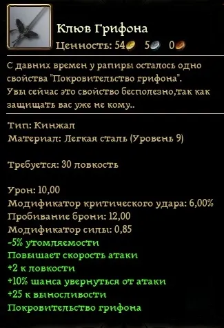 С давних времен у рапиры осталось одно свойства "Покровительство грифона".
