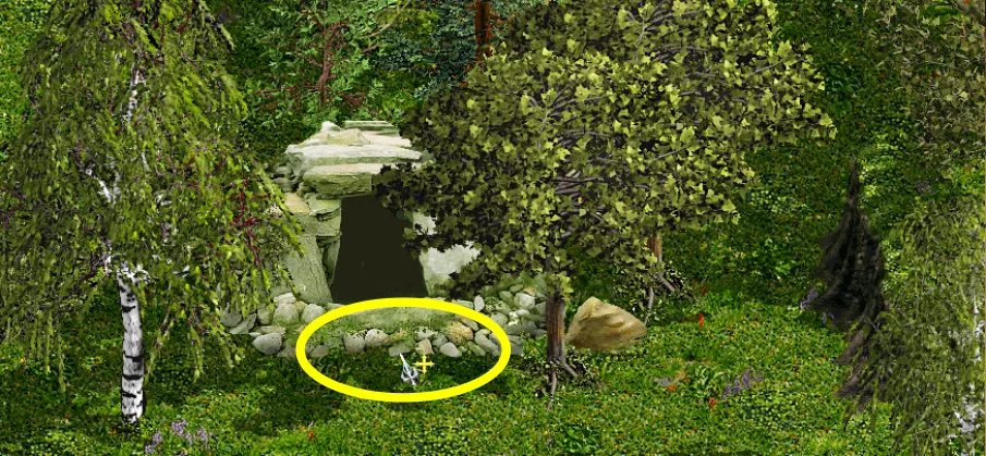 Вам может показаться, что в пещеру оборотня попасть невозможно, но это не так. Просто точка перехода представляет собой небольшой камень, в который нужно попасть курсором.
