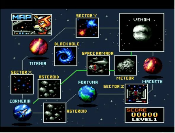 Другая уникальная находка гениев во главе с Миямото – выбор пути, которым можно пройти игру. До цитадели врага – планеты Venom, можно было добраться тремя дорогами. Каждая из них предлагала свой набор сражений в различных зонах и уровень сложности. Таким образом, чтобы увидеть все вложенное в Star Fox, освобождать систему Лилат надо было трижды. Только вот сделать это было ну очень трудно. Три жизни, одно продолжение, редкость контрольных точек и призов – бомб, щитов и усиления лазера – все способствовало полету джойстика в стену. Но тем ценнее была достигнутая победа.