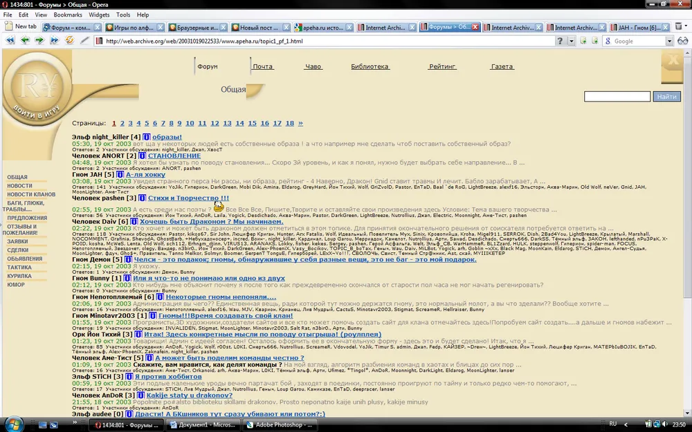 Скрин датируется 21 августа 2003 года... Самое интересное было для меня найти там свой топик с нытьем и просьбой не обнулять игроков после открытия игры :) К сожалению, прочитать нельзя, не сохранилось :(