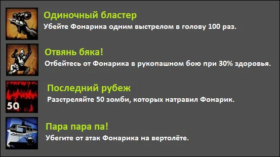 Количество HP: У Фонарика на 40% больше, чем у обычного зомби, здоровье не регениться.