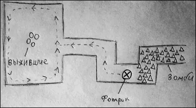 Основная тактика: Фонарик мчится на роликовых коньках к Выжившим привлекая внимание обычных зомби светящейся гирляндой, которая обмотанная по всему телу. Перепрыгивает все виды препятствий, в том числе может легко прыгнуть на высоту второго этажа. При особо близком контакте начинает бить током. На дальних дистанциях пускает электрические заряды, которые уменьшают скорость Выживших. При удачной «поимке» Выживших, начинает двигаться на расстоянии от них и пуская замедление. На ниже показанных двух картах (уровни все те же самые, просто я демонстрирую тактику подоходчивей) идёт объяснение тактики: