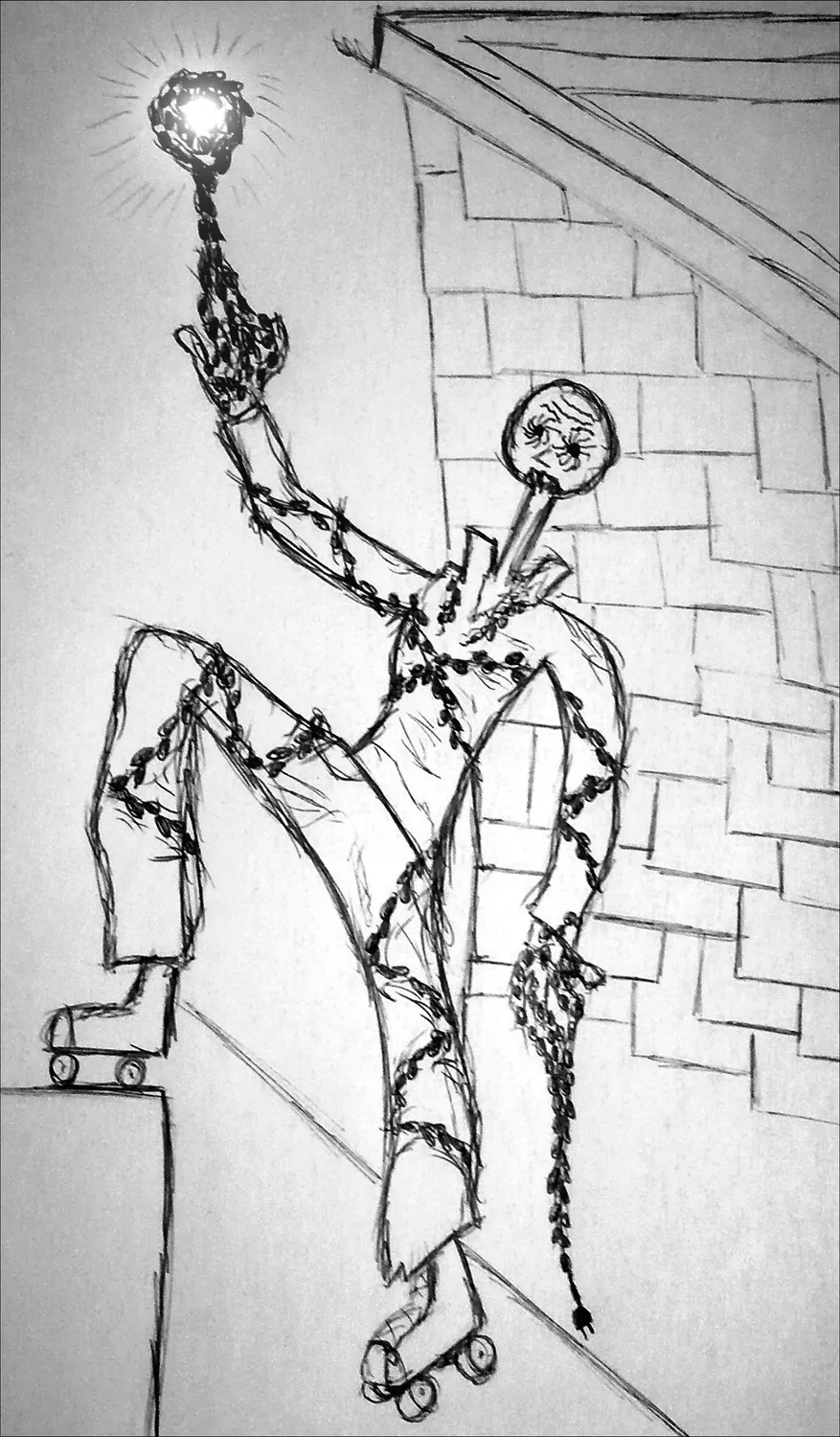 Внешность и описание: Фонарик имеет сутулое телосложение, высокого роста, длинные руки, вытянутая шея, оторванная нижняя челюсть, злая гримаса на лице. Носит неопрятную рваную одежду. На ноги надеты роликовые коньки. Дело в том, что до того как заразиться Фонарик был обычным роллером и катался на роликах в свободное от работы время. Всё его тело замотанно в елочную гирлянду. Во время одной из атак зомби этот самый роллер по глупости не смог перелететь препятствие, которое представляло собой ёлку. Бедный парень в панике запутался в елочной гирлянде и стал жертвой зомби.