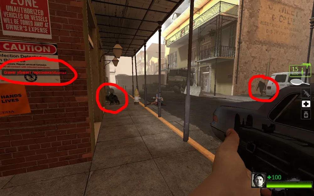 Пострадавших нет, только мёртвые – Когда Ментал кидает в вас любой предмет, увернуться, и подставить под удар специального зомби или босса.