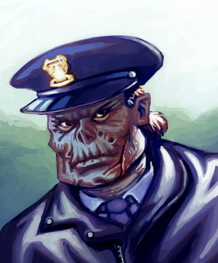 Офицер полиции был один из первых, кто увидел атаку зомби. Прямо перед ним какой-то мужчина набросился на женщину и вцепился своими зубами ей в шею. Началась паника. Сначала Офицер подумал, что это сбежавший сумасшедший, но когда он подошел поближе, то понял: это что-то нечто другое. Ему пришлось пристрелить мужчину на месте. Женщина была уже мертва. Офицер доложил о произошедшем, и ему приказали прибыть в точку сбора возле моста. Только он собрался уходить, как убитая женщина встала и на бросилась на него. Офицер успел среагировать и выпустил пулю прямо в лоб восставшей из мертвых.