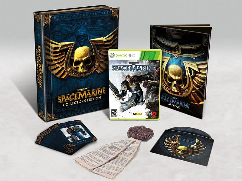 THQ анонсировала коллекционную версию шутера Warhammer 40.000: Space Marine. Помимо диска с игрой, в набор войдут: эксклюзивная упаковка, 25 карт с информацией о персонажах, печать чистоты, альбом иллюстраций в твердой обложке и диск с саундтреком.