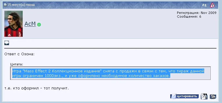 Озону наверно уже много пользователей отправили сообщение насчет коллекционки,и вот и оф комментарии: