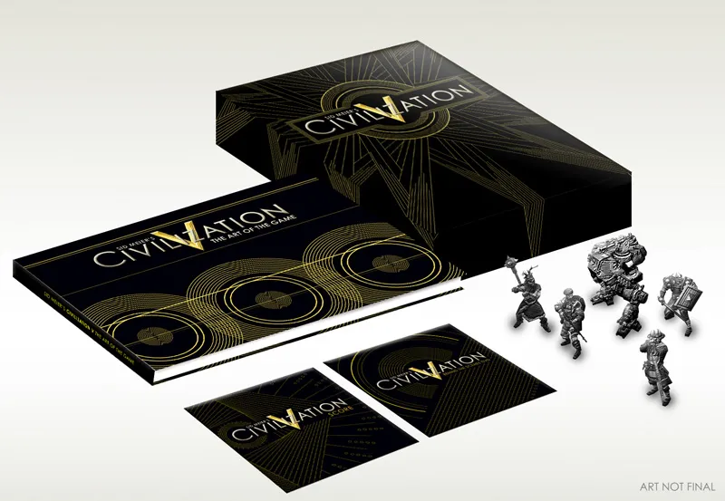 - Пять металлических фигурок юнитов Civilization V, созданных Reaper Miniatures