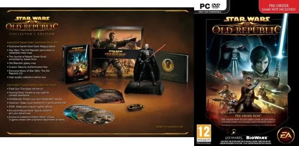 Как отмечает Kotaku, в коллекционку Star Wars: The Old Republic положат статуэтку Дарта Малгуса, отдельный диск с эксклюзивным саундтреком, металическу коробочка для дисков игры, галактическую карту и пр., а также ряд предметов для самой игры, например, голо-танцор и голо-камеру.