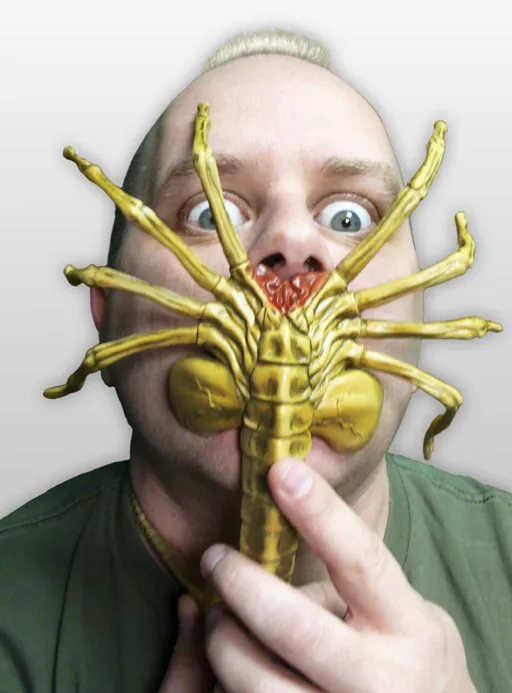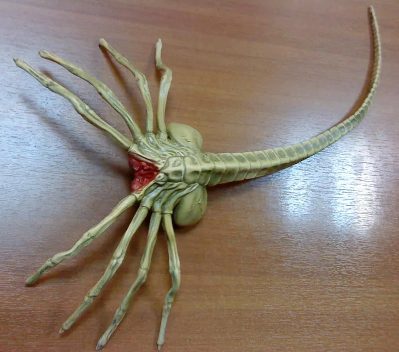 - гибкая фигурка «Чужого-лицехвата» в натуральную величину — точная копия существа из фильмов, которая украсит любую коллекцию;