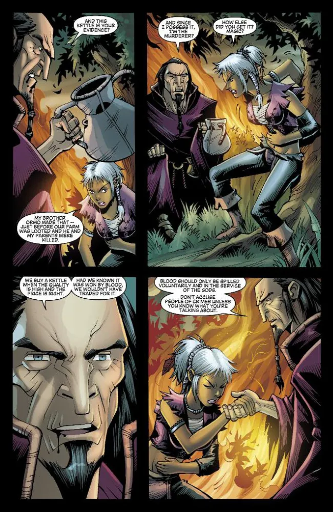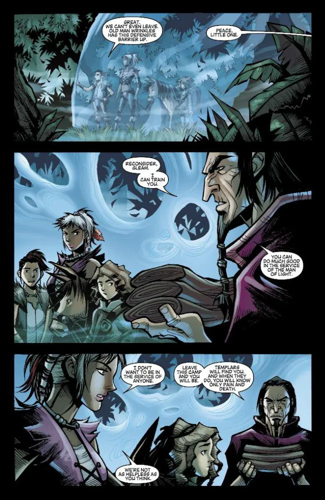 Вспомните первый выпуск комикса. Гарлок сказал Грегору, что он послан человеком света. То же самое говорит и этот маг из леса. И тот, и этот - маги крови. Выводы очевидны.
