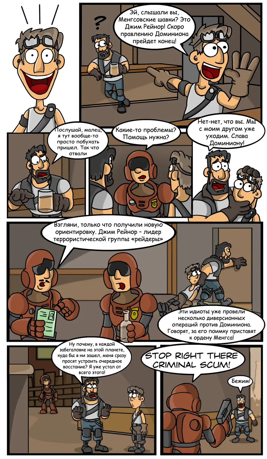 "Stop Right There Criminal Scum!" Тот кто рисовал комикс опредлённо играл в Облу )) Там стражники говорят именно это ) Слово в слово ) Ну, а комикс ) Да, интересный )