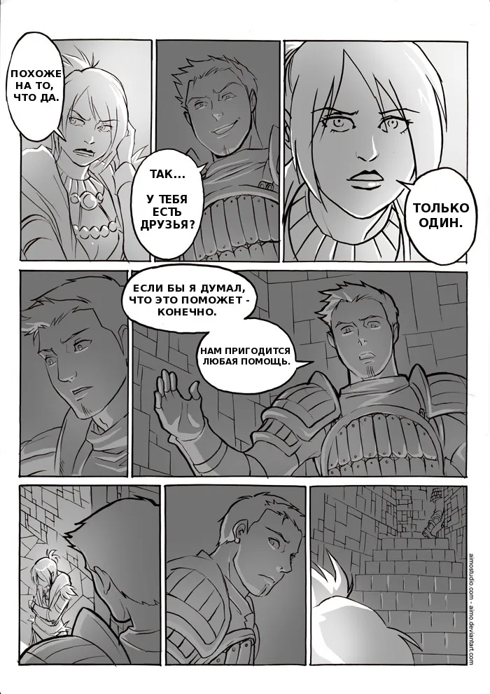 Кстати, в этом комиксе главная героиня (игры) - девушка. Поэтому Морриган спрашивает у Алистера - "Ты любишь ее?". Поэтому на последней странице видимо Морриган говорит о Флемет и главной героине.