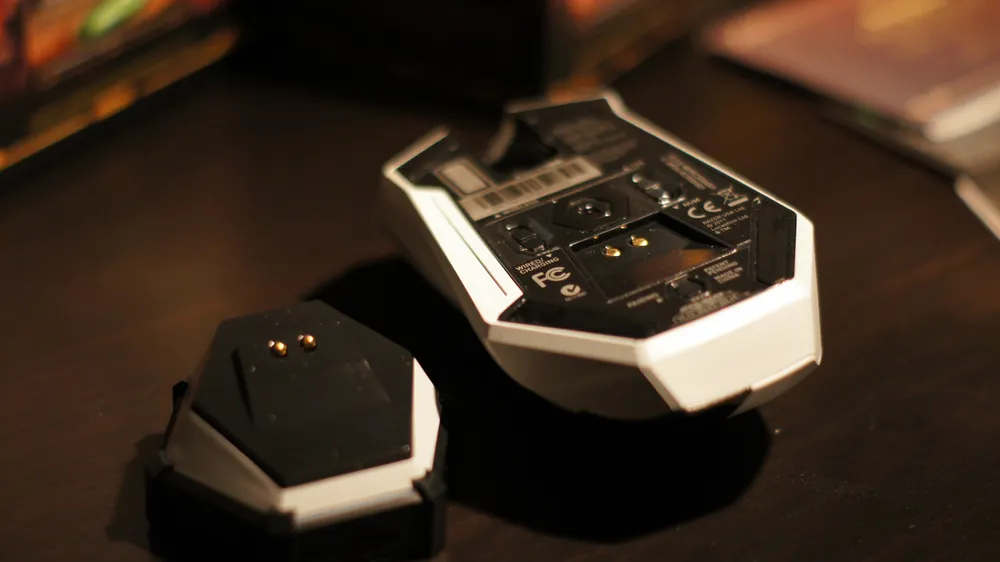 Зарядная станция, идущая в комплекте, выполнена в том же дизайне и органично смотрится рядом с мышью. Хотя я испытал некоторые неудобства в ее использовании. Если собираетесь постоянно держать мышь в беспроводном режиме, то необходимо будет временами ее подзаряжать. Либо от провода, что делает ее проводной, либо на самой станции, что делает из мыши подобие статуэтки «Тысячелетнего Сокола». Причем во время подзарядки на станции, необходимо мышь выключать, а это – лишнее телодвижение, которое мне, лентяю, делать не особо хочется. Плюс ко всему, с подключенным аккумулятором мышь поначалу ощущается как кирпич, из-за чего игровой скилл снижен до тех пор, пока не привыкнешь к новому весу. Зато позже вытаскивать аккумулятор и работать с облегченным вариантом нет никакого желания. Тем более, что можно использовать и станцию, и провод попеременно. В конце концов, играть за столом можно и через провод, а в случае чего, взять мышь на диван и подключить ее через зарядную станцию, выступающую в данном случае в качестве передатчика сигнала. Бьет она, кстати, весьма неплохо. По крайней мере, перелистывать музыкальные треки из другой комнаты мне удавалось.